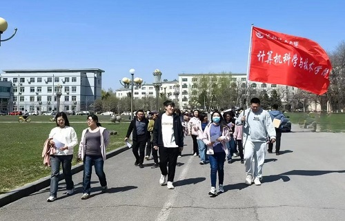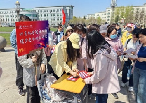 学院工会主席张丽宣读了工会倡议书,倡议全体教师率先垂范、以身作则,做绿色低碳出行的风向标,引领更多的人积极参与绿色出行活动中来,共创绿色出行新风尚。随后,参与活动的教师逐一领取了签到卡片,个个精神抖擞,抬头挺胸,迈开步子,逐梦前行。