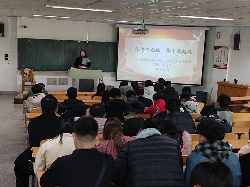 侯建梅从近代鸦片战争为切入点,着重讲解了党的发展历程、党的性质、党的现阶段任务和战略目标,以及如何传承优秀共产党员精神。她还带领全体同学认真学习了习近平总书记在庆祝中国共产党成立一百周年大会上的重要讲话,回顾了党的辉煌成就,诠释了党的伟大进程。她希望有志向入党的同学要树立正确的入党动机,牢记党员标准,树立“请党放心,强国有我”的责任意识,青春心向党,坚定跟党走。要把对党和国家的热爱之情落实到自己的实际行动中,勇于担负起中华民族伟大复兴的重大责任!