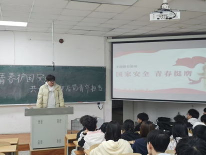 学院创新宣教形式,开展“国家安全·青年说”系列活动。通过事迹分享会、主题演讲等形式讲述青年榜样的奋斗故事。2022级本科生赵明杰在分享中说道:“护边员轩银龙扎根西北边陲7年,巡逻2.7万公里,用脚步丈量国土安全。他的坚守让我深刻体会到,国家安全需要每一代青年挺身而出!”2024级本科生谭林昊轩也分享了他的故事:“航天工程师李瑶,扎根科研一线8年,参与多项关键航天技术研发,为我国航天事业迈向深空保驾护航。她用青春和汗水浇灌科技强国之花,让我懂得在科技领域守护国家安全,青年责无旁贷。” 2024级本科生吴瀚林又补充道:“缉毒警察陈宇,卧底毒窝三年,历经无数惊险瞬间,与毒贩斗智斗勇,成功协助警方破获多起重大贩毒案件,守护社会安宁。他的无畏与担当,让我明白国家安全的防线需要青年用勇气和智慧铸就。鲜活的故事激发了学子们的行动自觉,校园内掀起“国家安全,青年当先”的热潮。活动期间,百余名学生自发组建安全宣传志愿队,深入社区开展网络安全科普、反诈宣传等实践服务。